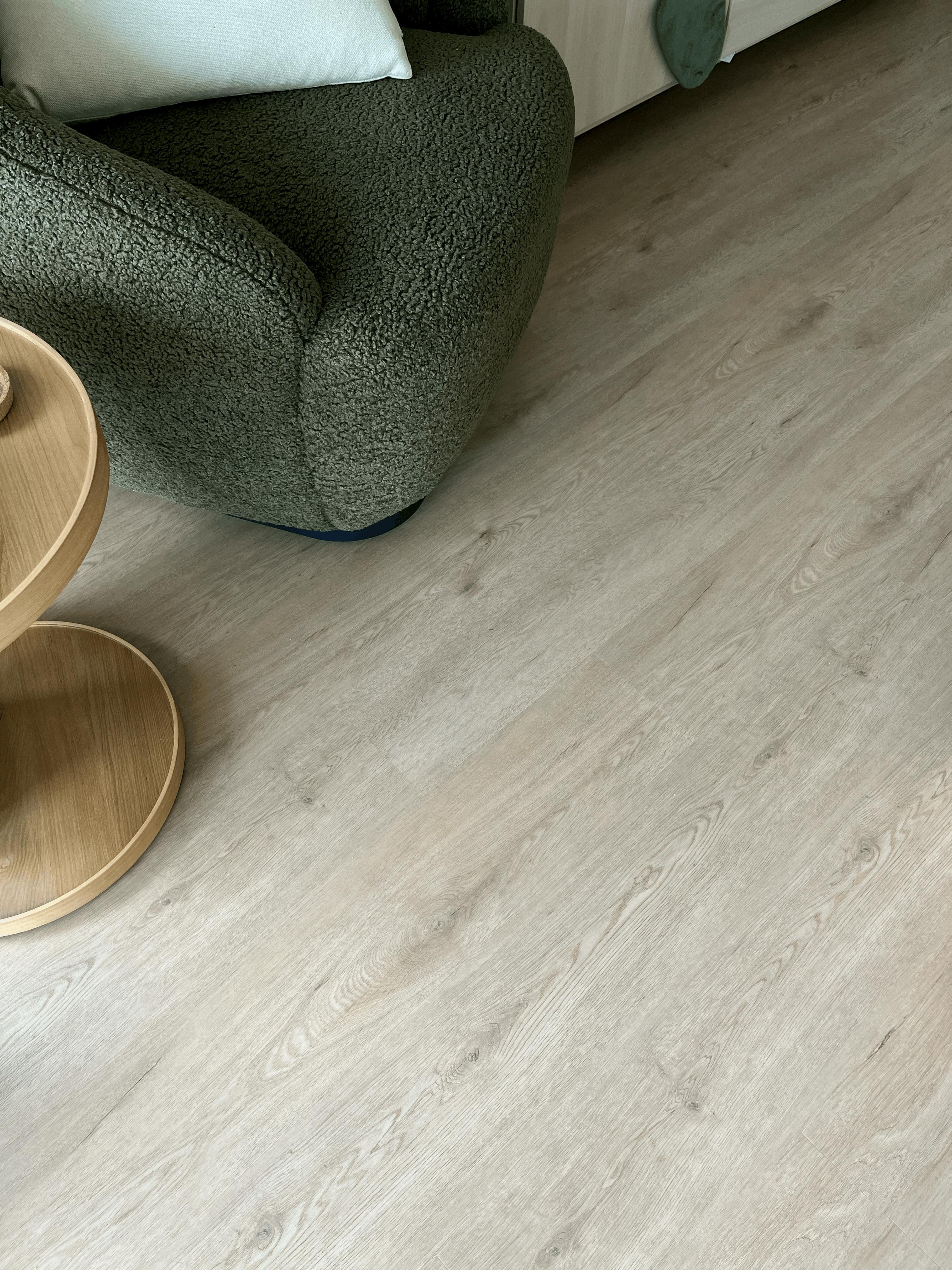 Flooring Works Acoustic Soft Warm Ash floor brings the beauty of a warm cream AB grade oak timber with the versatility and durability of a hybrid floor. The Soft Warm Ash features a warm beige Oak-styled grain and elegant subtle knots throughout the timber. As part of the Acoustic Hybrid range, the Soft Warm Ash floor is 100% waterproof, finished with a durable 0.5mm Robust Wear Layer, and comes pre-attached with 6 Star Acoustic Underlay.